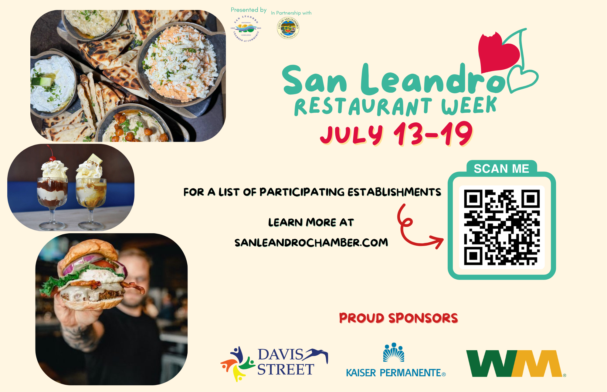 San Leandro Restaurant Week 2025 Back to Search San Leandro Restaurant Week 2025 7/13/2025 - 7/19/2025 Description Additional Info Sponsors Proud Sponsors: × 7/13/2025 - 7/19/2025 Registered Guests × Share × Print Email Add to Calendar Facebook LinkedIn X Pinterest Powered By GrowthZone